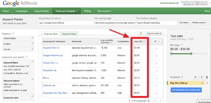 b). Cost Per Click: This keyword metric will come in handy when you’re running a Google AdWords campaign.