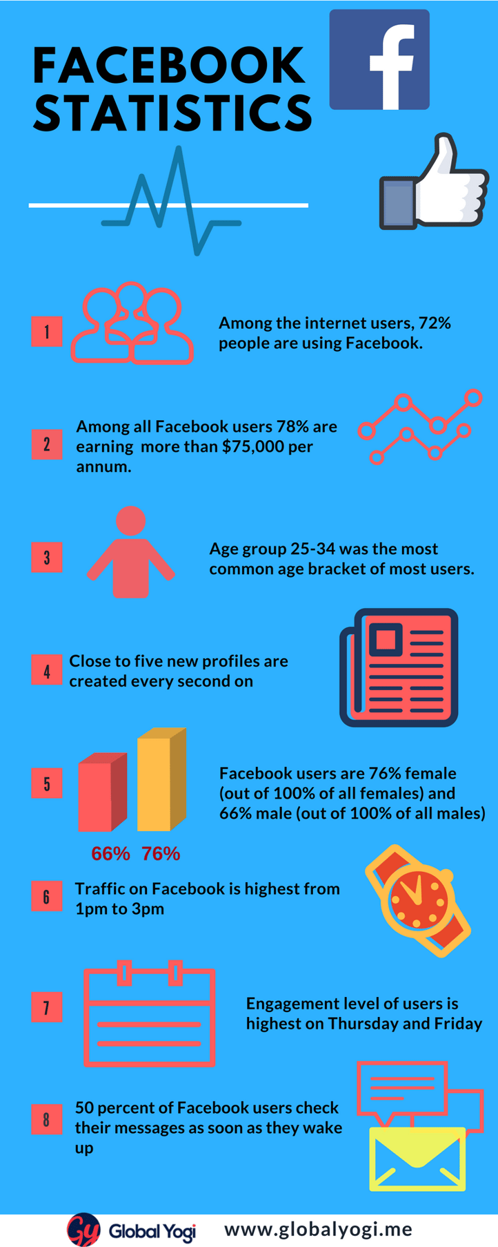 - Among all Facebook users 66% are earning between $50000-74,999 per year